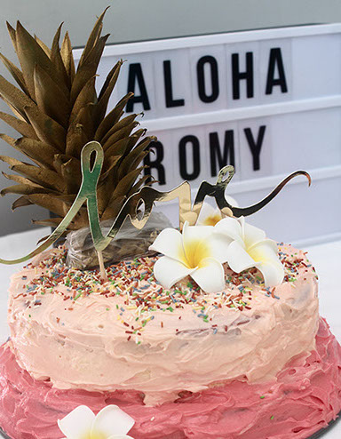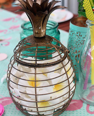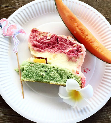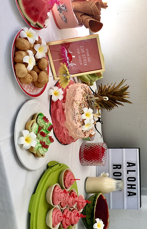 Zum Geburtstag gab's wieder Kaffee & Kuchen. Das Motto »Tropisch«: Flamingos, Ananas, Melone. Die Farben: Grüntöne, Pink, Rosa,