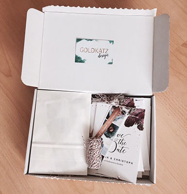 Wenn ich meinen Hochzeitspaaren ihre Karten entweder selbst überreiche oder zuschicke, dann bringe ich es nicht übers Herz sie einfach in einen Karton zu packen. Ein schöner Inhalt braucht auch eine schöne Verpackung. Deshalb muss hier auch etwas Kreativität her.